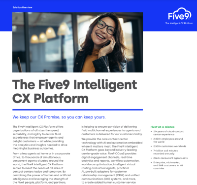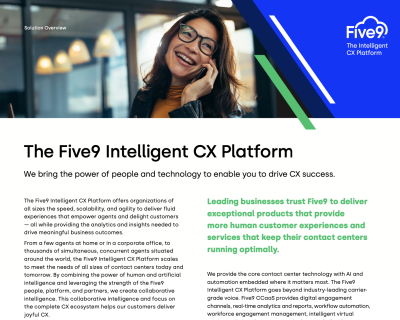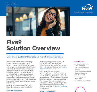 Download the solution brief to learn about Five9 products and services including: