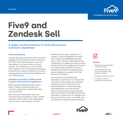 - The benefits of combining Five9 and Zendesk Sell to increase prospect and customer satisfaction