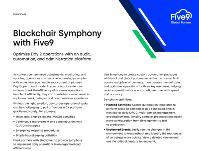 As contact centers need adjustments, monitoring, and updates, operations can become increasingly complex with scale. Blackchair Symphony is an audit, automation, and administration management solution designed to help contact centers streamline management operations.