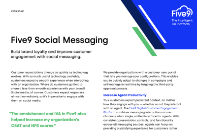 Customers expect to interact with you from a variety of channels, anywhere and anytime. See how Five9 Social Messaging expands agent and customer engagement with a familiar customer outreach option.